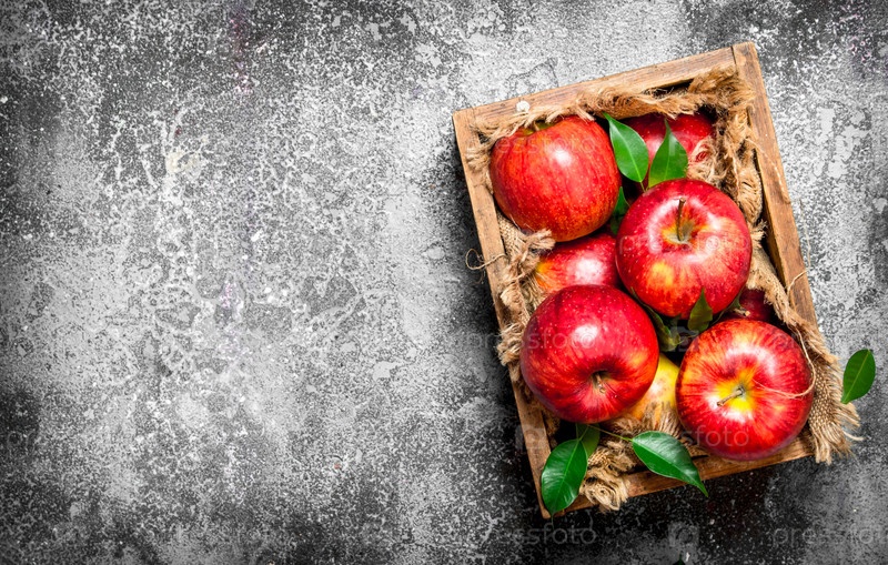 Красные яблоки в старой коробке