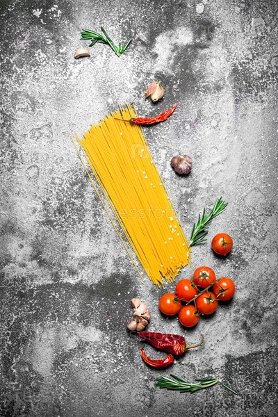 Спагетти с помидорами, розмарином и чесноком