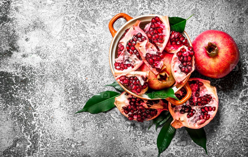 Кусочки свежего граната в миске