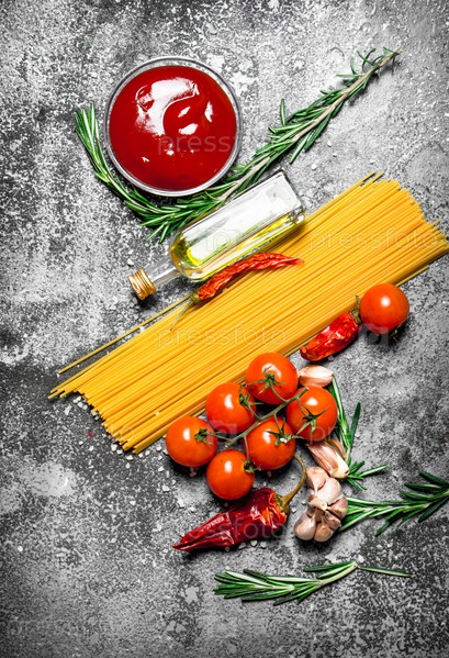 Спагетти с томатным соусом, специями и оливковым маслом