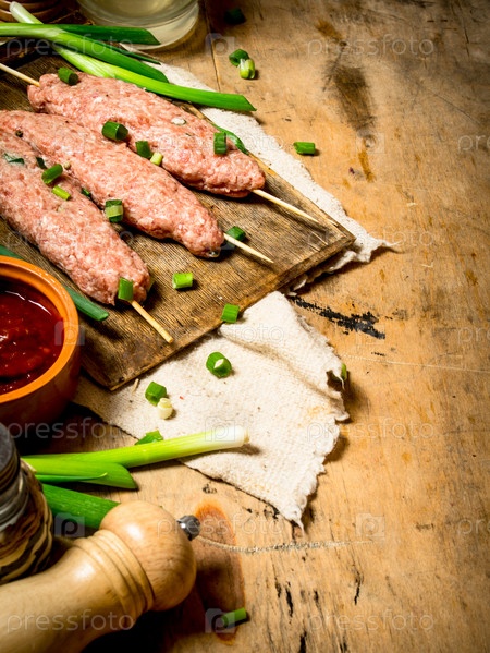Сырой кебаб с томатным соусом и зеленым луком