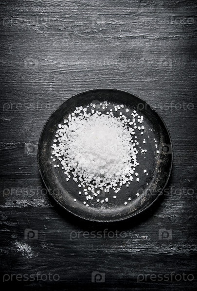 Соль грубого помола на старой сковороде