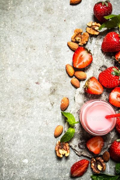 Клубничный коктейль с мятой и орехами
