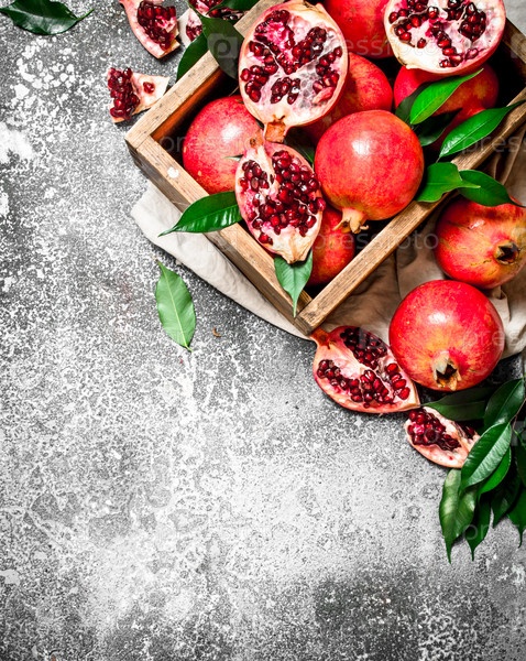 Спелые гранаты в коробке