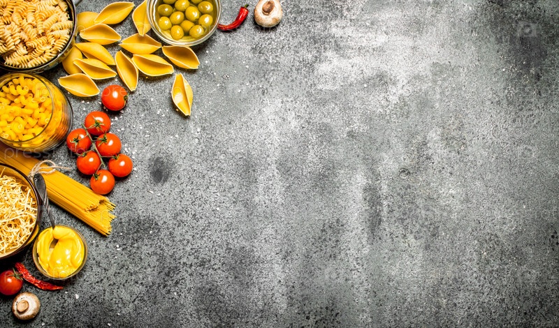 Различные макароны со специями и овощами