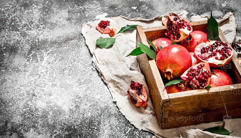 Спелые гранаты в коробке