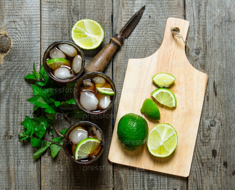 Свежий коктейль с лаймом и мятой на деревянном столе