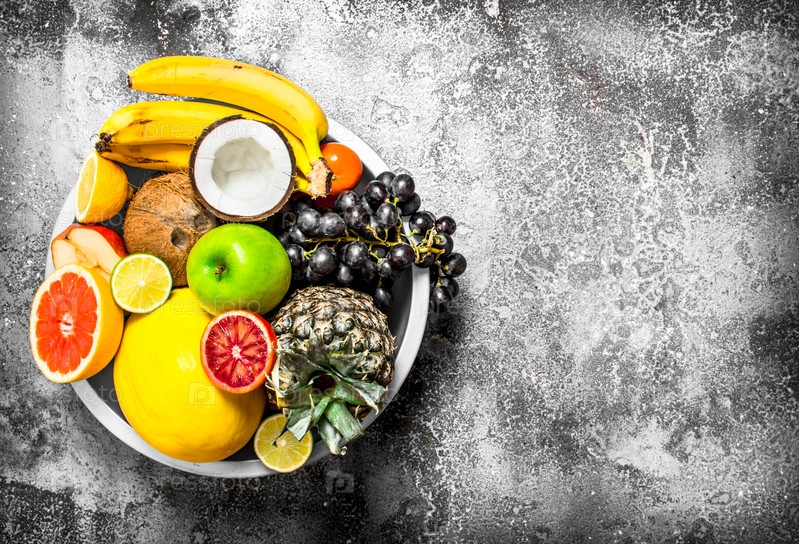 Много разных фруктов в большой миске