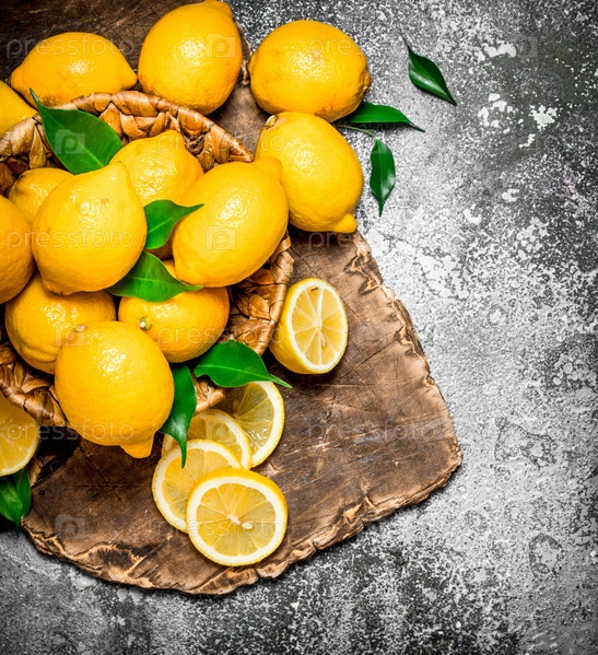 Свежие лимоны в корзине