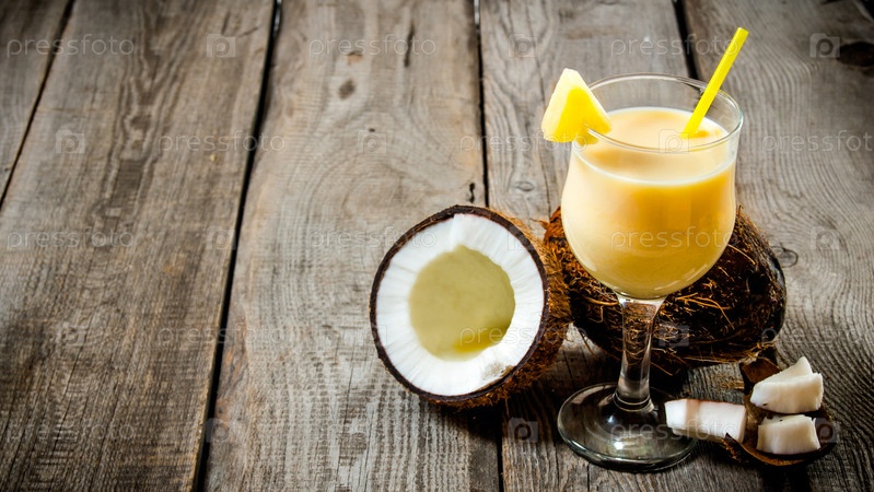 Свежий коктейль в стакане с кокосом