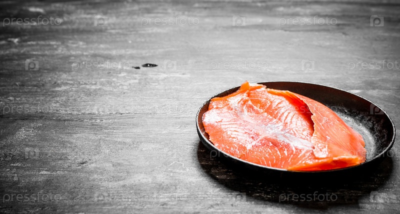 Тонкие ломтики лосося в старой плите