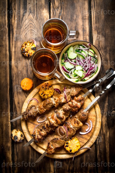 Свиной шашлык с пивом и овощами