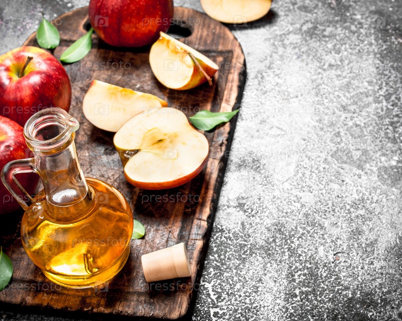 Яблочный уксус из свежих яблок на разделочной доске
