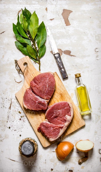 Сырое свежее мясо на доске со специями