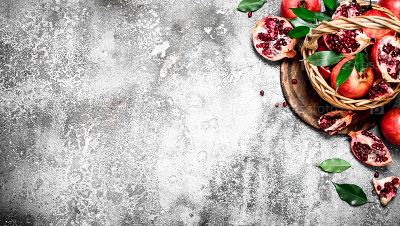 Свежие гранаты в корзине