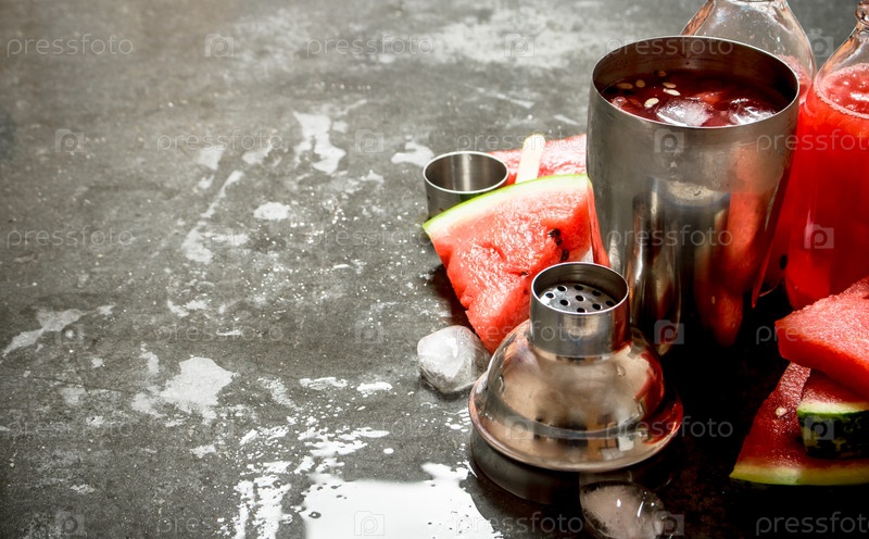 Арбузный коктейль со льдом в шейкере
