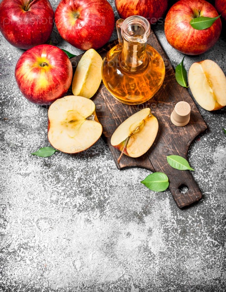 Яблочный уксус из свежих яблок на разделочной доске