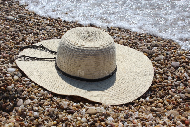 Плетеная шляпка на пляже из гальки
