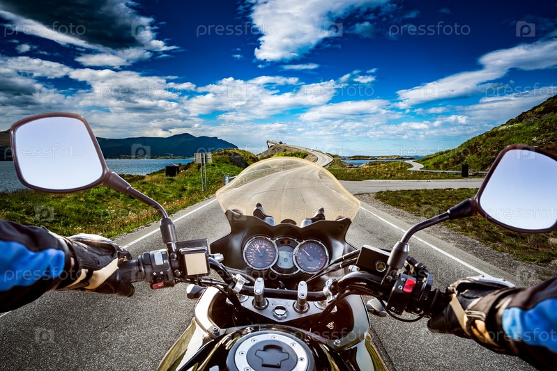 Байкер едет по дороге
