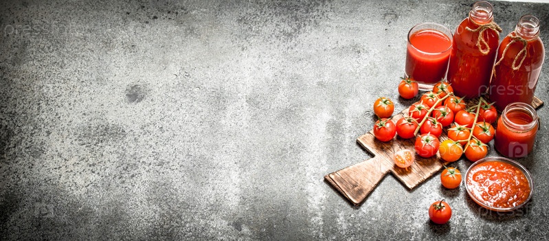 Свежие помидоры, томатный сок и соус
