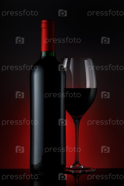 Бутылка красного вина с бокалом