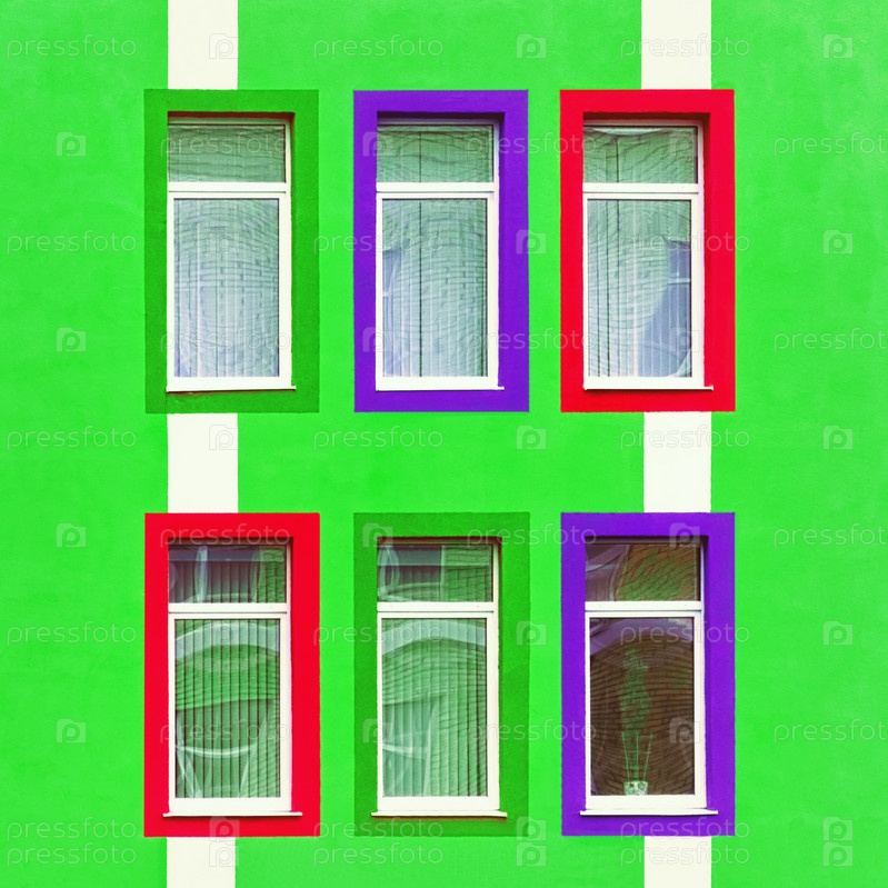 Зеленая стена с окнами