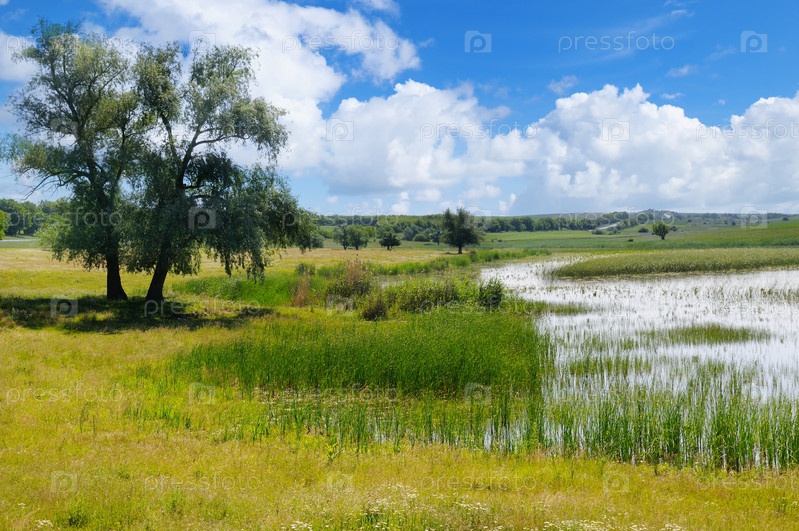 Старое озеро с водной растительностью