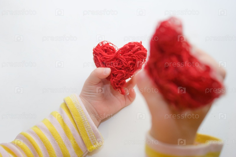 Детские руки держит красное сердце