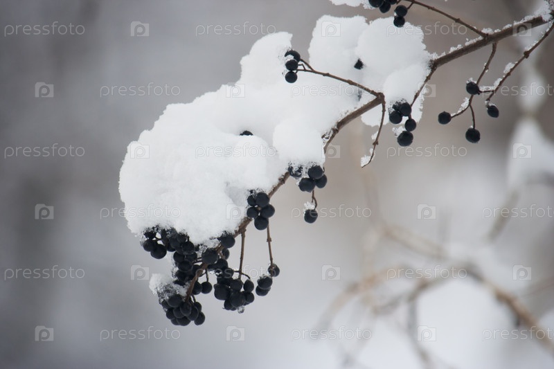 Черная ягода под снегом