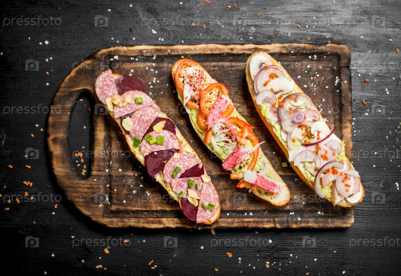 Бутерброды с морепродуктами, мясом и овощами