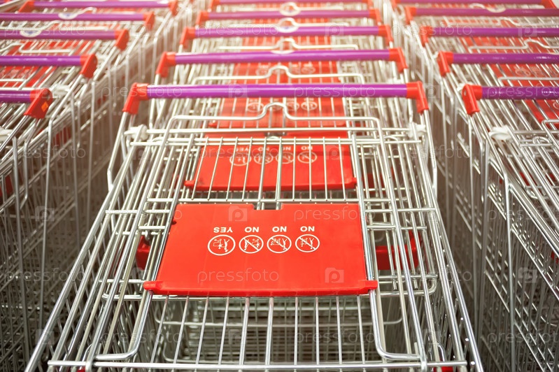 Ряд тележек супермаркета