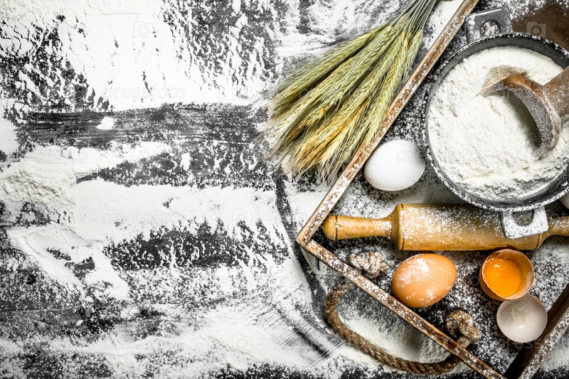 Мука с яйцами и скалкой