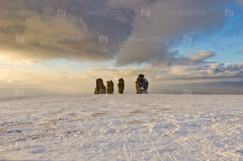 Останцы плато Маньпупунер зимой, Северный Урал. Одно из семи чудес России