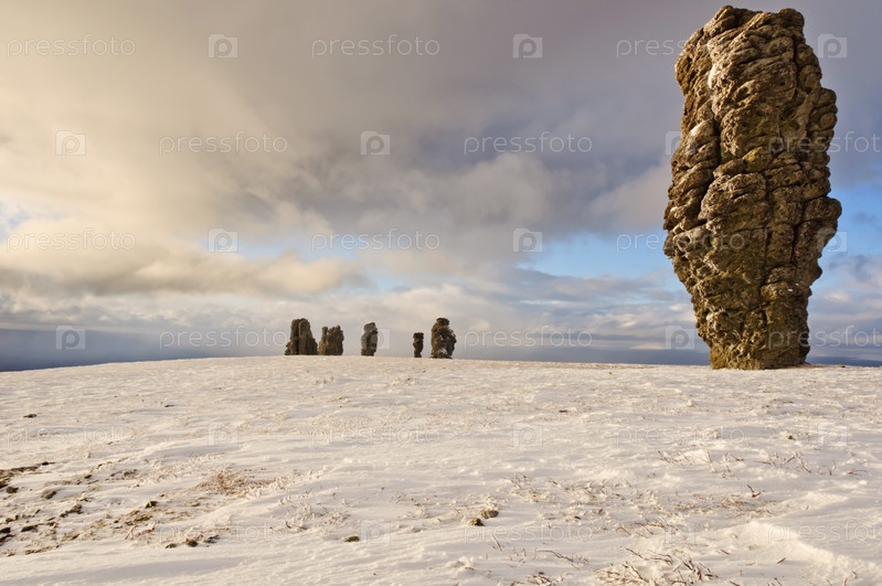 Останцы плато Маньпупунер зимой, Северный Урал. Одно из семи чудес России