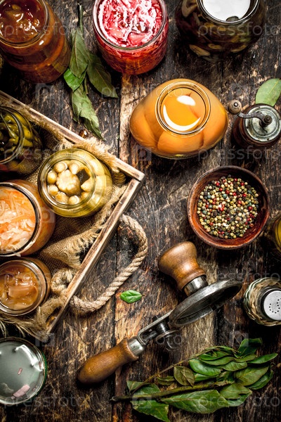 Различные консервированные овощи и грибы