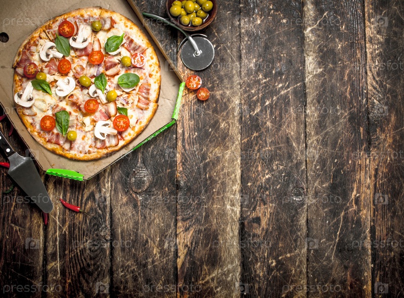 Пицца со свежими овощами в коробке