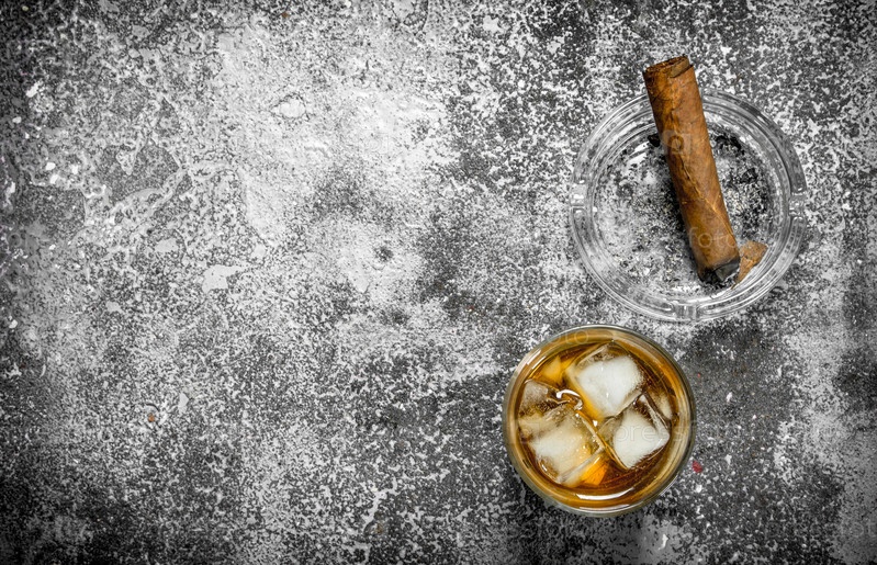 Стакан виски с сигарой
