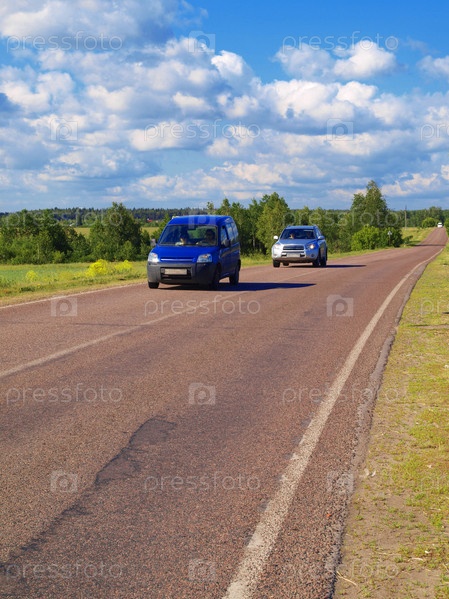 Автомобили на шоссе в летний день