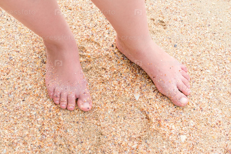 Женские ноги на песке на пляже