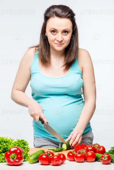 Беременная девушка готовит салат