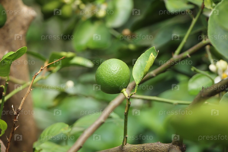 Зеленый лимон на дереве