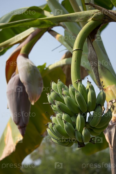 Зеленый банан на дереве