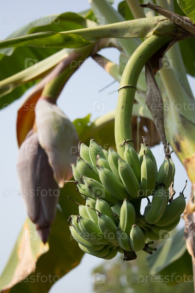 Зеленый банан на дереве