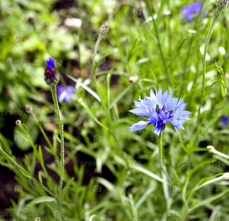 Цветущие голубые васильки
