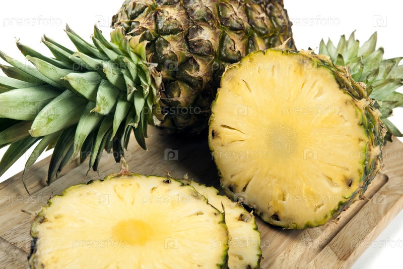 Кусочки ананасов на разделочной доске