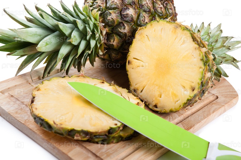 Кусочки ананасов на разделочной доске
