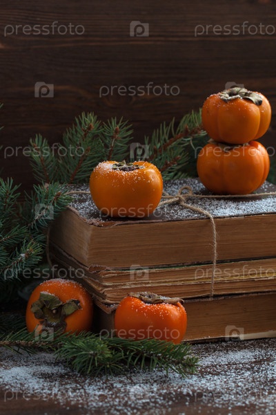 Хурма на стопке старых книг