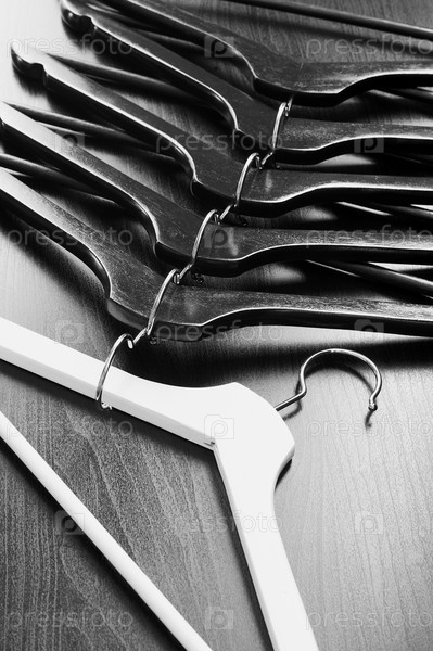 Белая вешалка и черные плечики