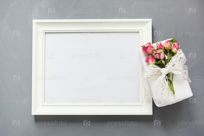 Белая рамка с маленькими розами
