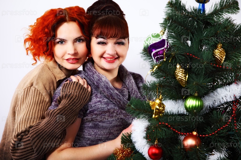 Студийный портрет улыбающихся привлекательных подруг